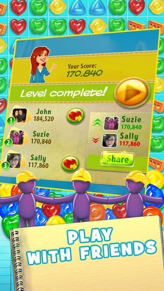 Головоломки здесь состоят из сладостей и угощений, которые дают вам необходимые материалы для восстановления мировой карты. От уровня к уровню сложность возрастает. И хрустеть конфетками будет сложнее.