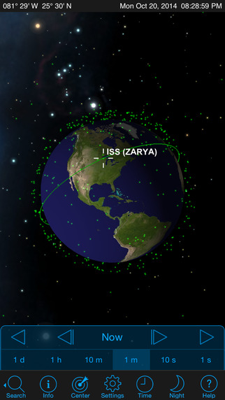 Международная космическая станция это крупнейшая станция на орбите Земли. Скорость ее движения позволяет ей обойти Землю всего за 90 минут! Узнайте больше об МКС и других спутниках в «Satellite Safari». Благодаря этому удобному навигатору вы сможете отслеживать положение спутников в режиме реального времени, одновременно получая информацию об их истории и миссии. А GPS-навигатор сообщит вам, какой спутник пролетает над вами прямо сейчас! Увлекательный и необычный способ исследовать космос!