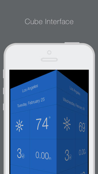 Уникальность приложения «Weathercube» заключается в том, что оно не только показывает подробный прогноз погоды на несколько дней, но и то, что оно оформлено в «кубическом» стиле, где вы можете управлять данными в один клик. Прогноз на четыре дня (облачность, влажность, скорость ветра) составляется с точностью до нескольких часов, чтобы вам было удобнее планировать свои дела.