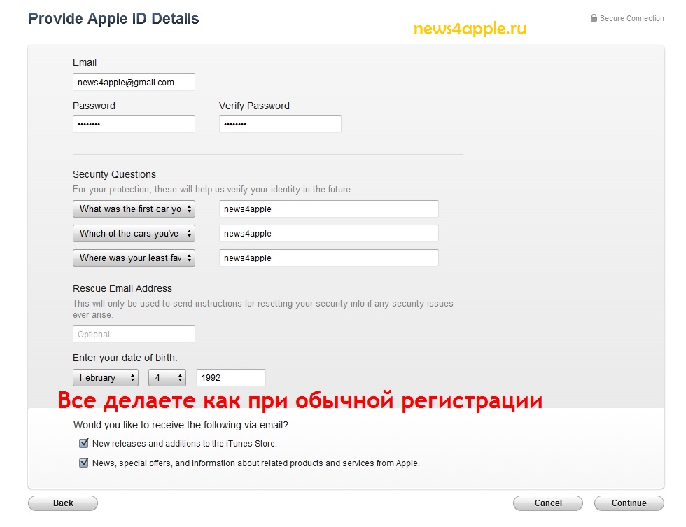 - 3)Заполняете данный как при обычной регистрации(почту лучше указывать *.com)