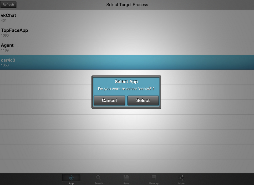 3. Запускаем iGameGuardian, и выбираем процесс csr4c3