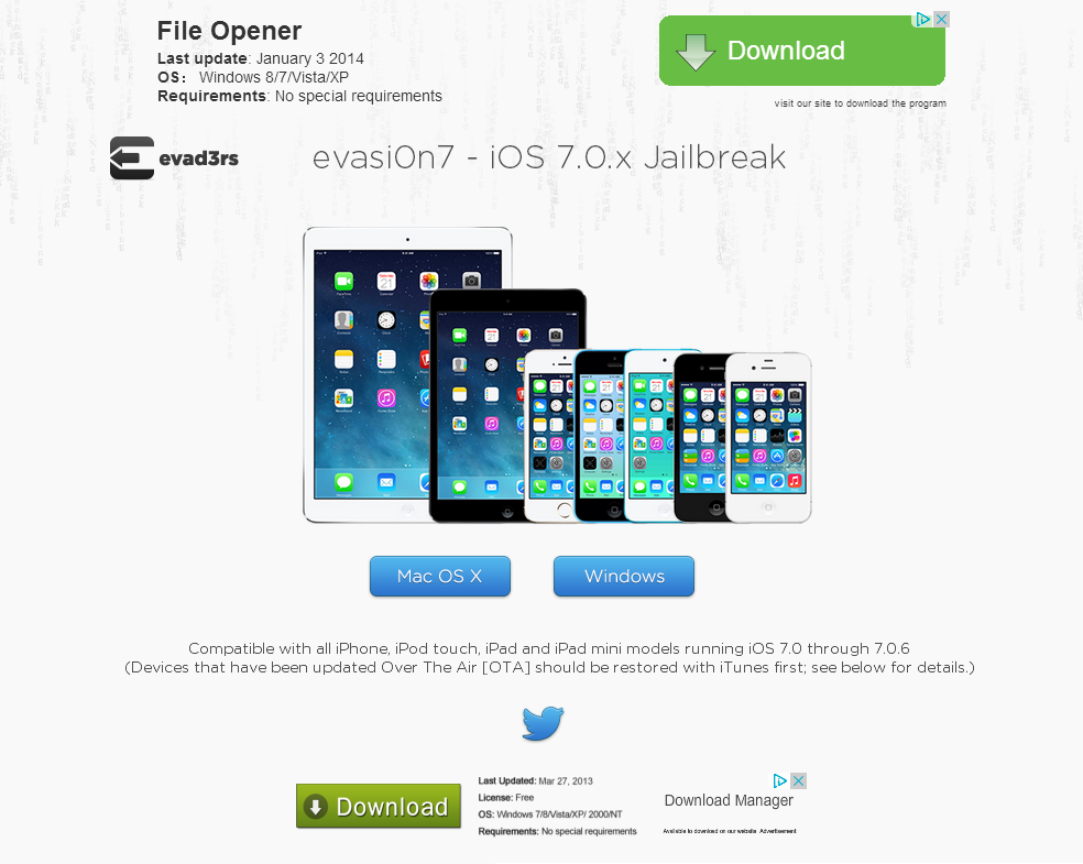 - Загрузить утилиту для джейлбрейка evasi0n7 с официального сайта evasi0n.com