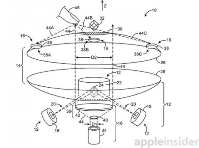 Если смотреть по данным, которые были опубликованы Бюро по патентам и торговым маркам США, то Apple работает над системой интерактивного 3D-дисплея. Данная система позволит прямо в воздухе взаимодействовать с проецируемыми объектами, которые будут представлять собой продвинутую голограмму. Пользователь сможет управлять 3D-голограммой при помощи прикосновений и жестов.