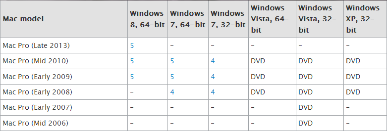 На официальном сайте компании Apple указана информация — теперь через Boot Camp настольный компьютер Mac Pro 2013 поддерживает только установку операционной системы Windows 8 или чуть более поздней версии. Первым компьютером Mac 2013 года является Mac Pro, который не поддерживает установку Windows 7 с помощью Boot Camp 5.