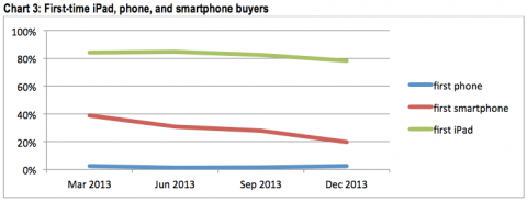 Еще опрос показал, владельцы iPad в 2 раза чаще отдают свой старый планшет семье или друзьям, чем это делают владельцы iPhone. Только у 2% пользователей iPhone стал 1-ым купленным смартфоном, в то время, как у 78% пользователей iPad стал 1-ым приобретенным планшетом.