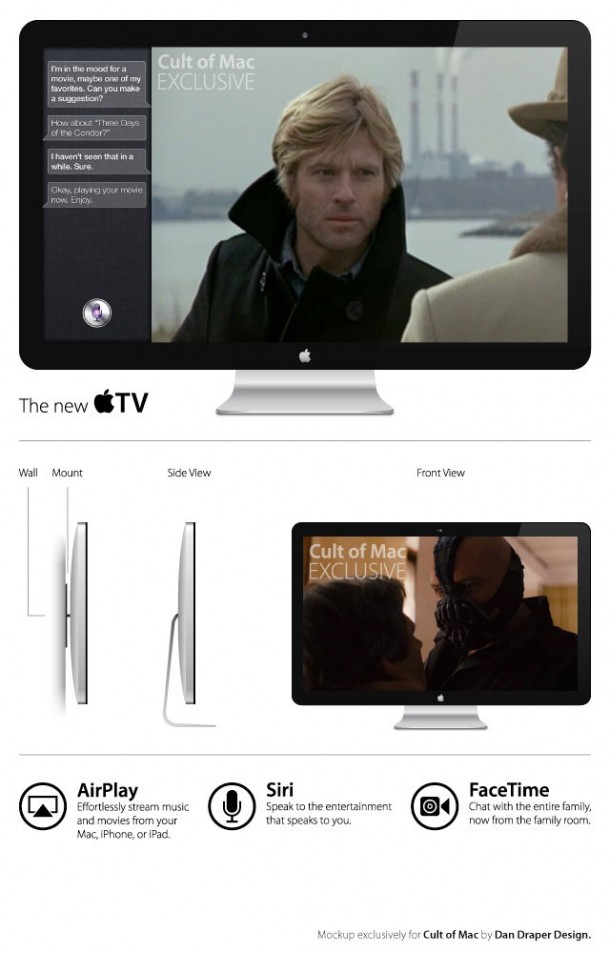 Кроме того, он [телевизор Apple] имеет интеграцию виртуального помощника Siri, как в iPhone 4S и с помощью неё пользователи смогут звонить через FaceTime”, сказал источник.